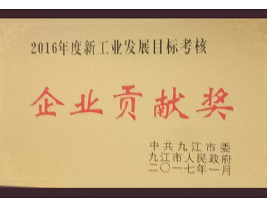 Jiujiang Municipal Committee of the Communist Party of China and Jiujiang Municipal People's Government jointly awarded the "2016 New Industrial Development Goal Assessment Enterprise Contribution Award" honor.