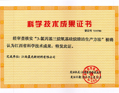 "3-chloropropyl trialkoxy silane cleaner production method" was awarded the honor of "Scientific and Technological Achievements of Jiangxi Province" by the Science and Technology Department of Jiangxi Province.