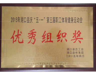 Hukou County Federation of Trade Unions and Hukou County Sports Bureau jointly awarded the honor of "2015 Hukou County Qing May 1st 3rd Staff Sports Fitness Games Excellent Organization Award".