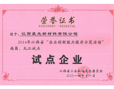 Jiangxi Provincial Industry and Information Technology Commission awarded the honor of "Pilot enterprise of demonstration activity of innovation ability Enhancement".