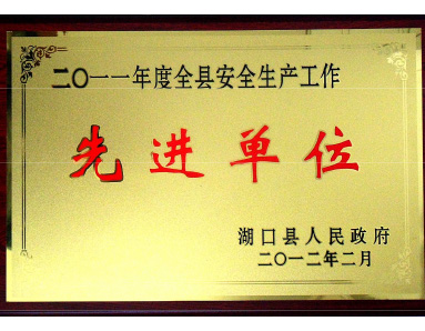 Hukou County People's Government awarded the honor of "2011 County Advanced unit of safety production work".