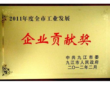 Jiujiang Municipal Committee of the Communist Party of China and Jiujiang Municipal People's Government jointly awarded the "2011 Municipal Industrial Development Enterprise Contribution Award".